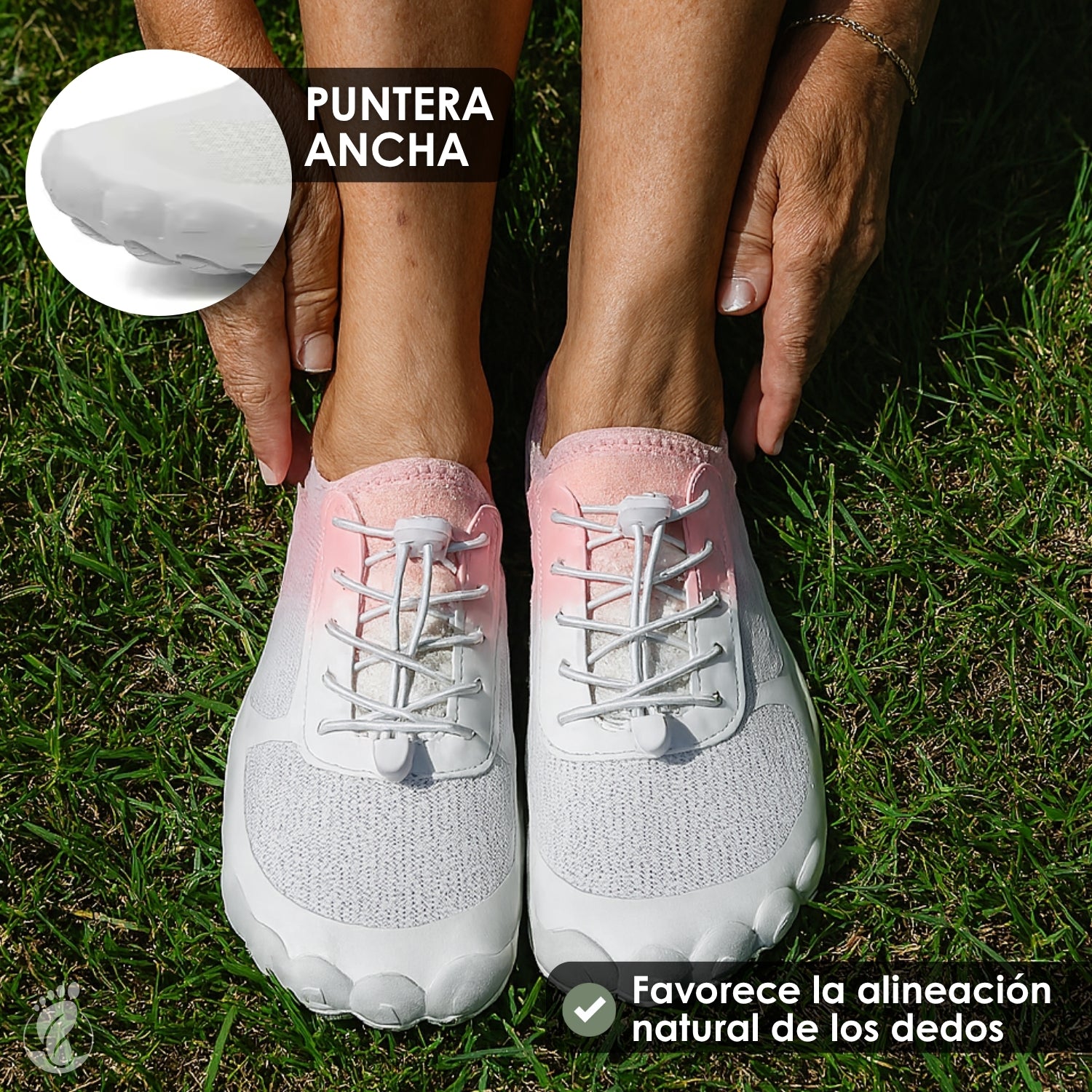 ✓ Caja ancha para los dedos: Permite que los dedos se muevan libremente, mejorando la fuerza y flexibilidad del pie.