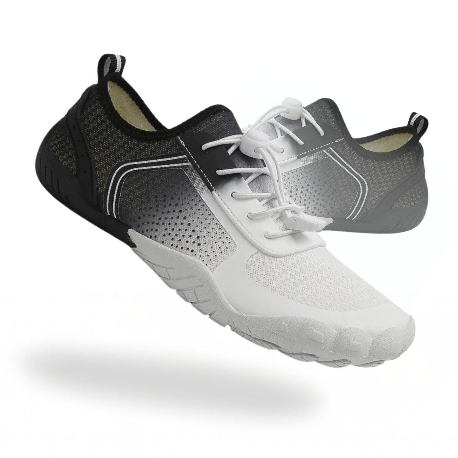 Nuestros modelos están diseñados para trabajar con tu cuerpo: suela fina y flexible (<5 mm), zero drop y horma con forma de pie para que los dedos se expandan libremente. Esto aumenta la propiocepción (feedback pie-cerebro), mejora el control y favorece una postura natural.